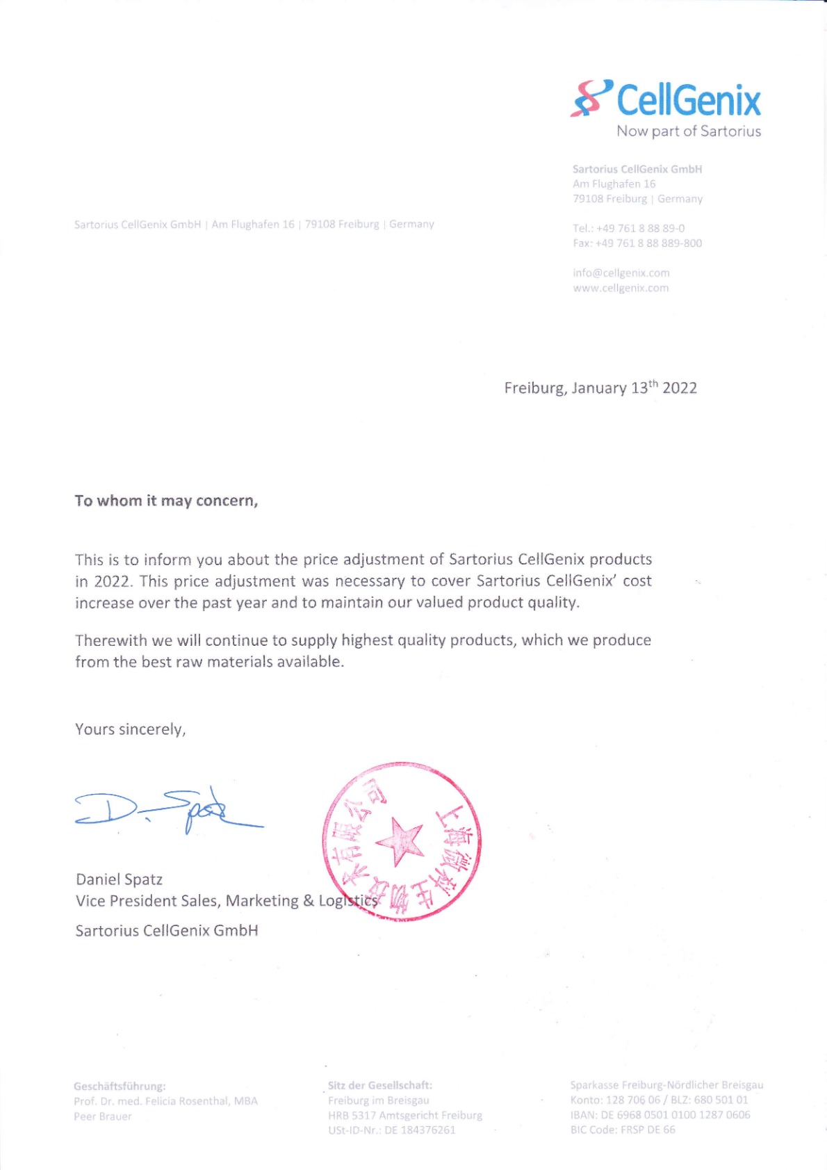 德國Sartorius CellGenix 產(chǎn)品價(jià)格上調通知
